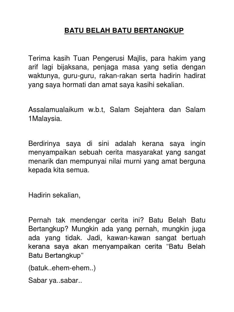 Sang ayah ialah seorang petani. Apa kesudahan cerita ini.jom saksikan cerita ini jangan lupa like. Pernahkah kamu mendengar cerita legenda batu belah batu bertangkup dari aceh? Batu bela bertangkup represesnts the rock who does not hesitate to consume or eat those who wish to commit suicide. Pengertian dan lokasi batu bantakup batu belah merupakan sebuah batu besar yang terletak lebih kurang 35 km dari takengon tepatnya di desa penarun, kabupaten aceh tengah.