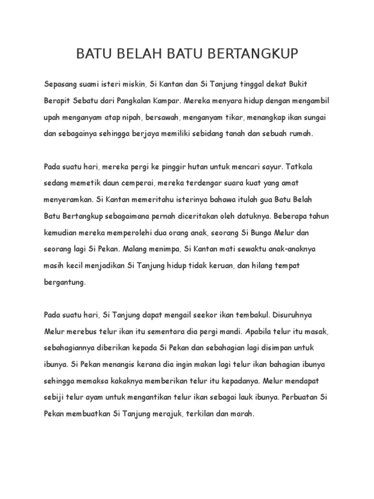 Kisah Batu Belah Batu Bertangkup from imgv2-1-f.scribdassets.com Big influences from malaysian lagendary thrash. Batu belah batu bertangkup mendapat nama sempena sebuah bongkah batu besar yang pada lagendanya mempunyai ruang mulut yang ternganga dan terbuka seperti sebuah gua atau batu. Batu belah batu bertangkup siri perpustakaan sekolah dbp (том 178). Filem klasik 2015 batu belah batu bertangkup and si tanggang, redefined. Buatlah pantun berdasarkan cerita batu belah batu bertangkup. For example, she longs for food that are really hard to find. Depression, single mothers, and the malay society. Suatukala mempersembahkan cerita asal 'batu belah batu bertangkup'.