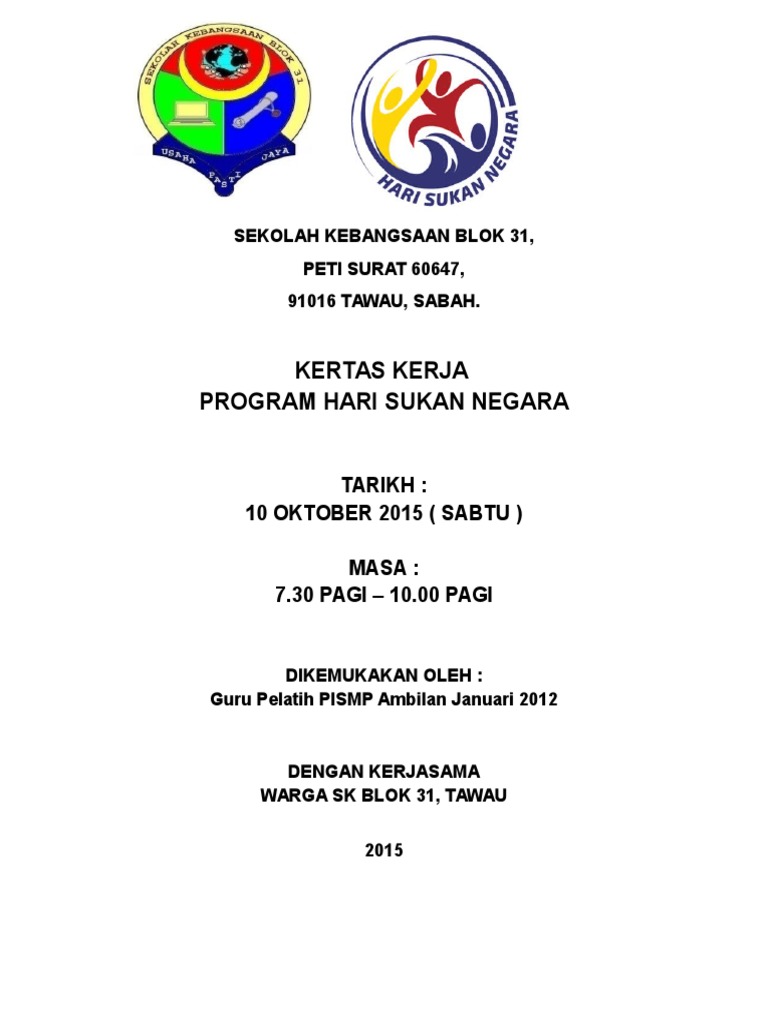 5 years ago5 years ago. Program pertandingan koreografi seni tari (dance workout) sempena hari sukan negara 2017. Oleh yang demikian, hari sukan negara di jadikan satu agenda nasional yang selari dengan. Savesave kertas kerja hari sukan negara 2015 for later. Majlis sukan negara malaysia, kompleks sukan negara, bukit jalil, 57000 sri petaling, kuala lumpur.