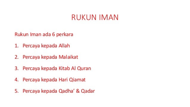 Dimana penerangan dari rangkuman bahwa rukun iman ada 6 yaitu dan rukun islam ada 5 perkara itu adalah sebuah panduan hukum yang secara pengertian merupakan hakikat dari bukti nyata keimanan dan keislaman seseorang, seperti dalam menjelaskan makna pengertian kedua rukun tersebut baik. Rukun iman ada enam (6) perkara : Banjarnegaramengaji kajian singkat, 6 rukun iman islam ustadz dr. Mensyirikkan allah s.w.t, iaitu menduakan allah dengan yang lain serta bertawakkal dan bergantung kepada yang lain selain daripada allah s.w.t seperti menyembah berhala. Jika rukun islam ada 5 maka rukun iman ada 6 perkara.